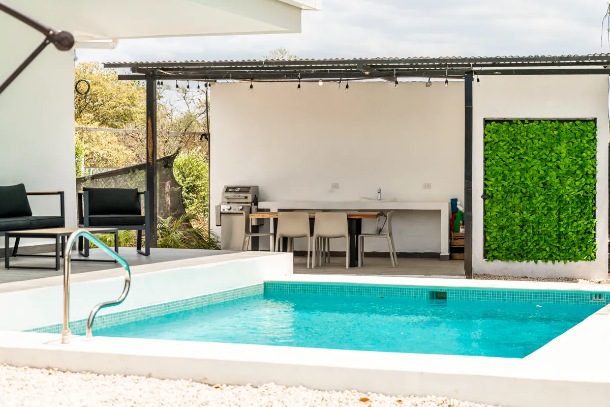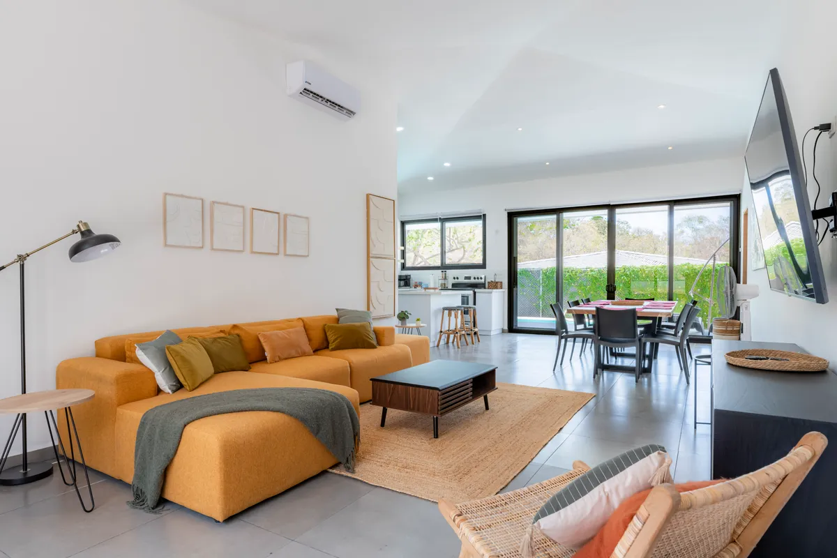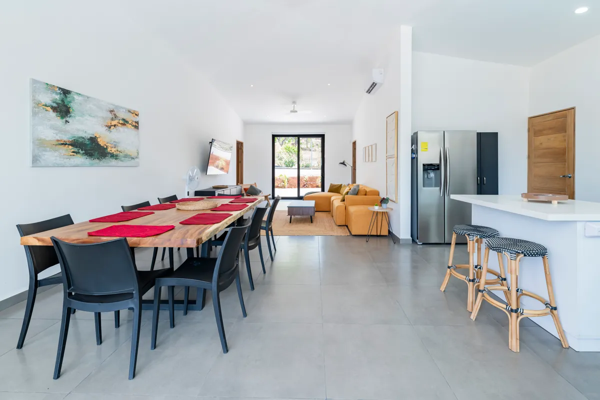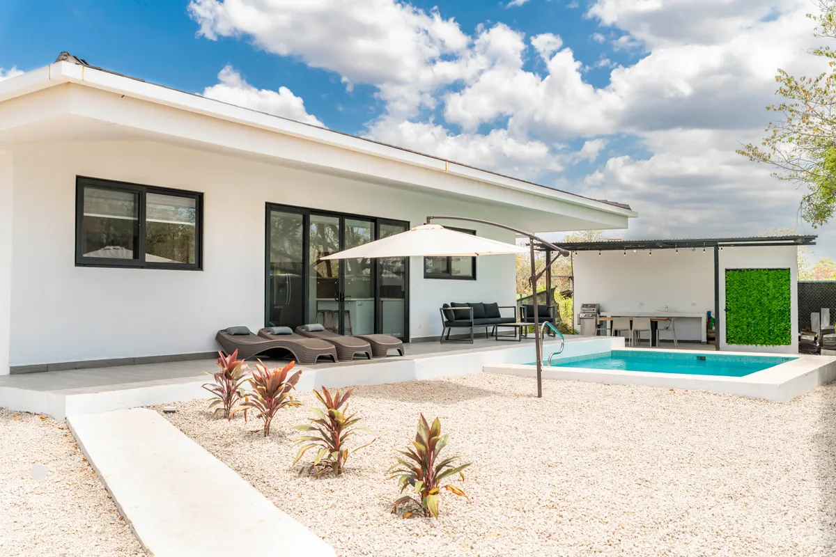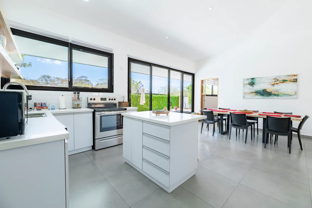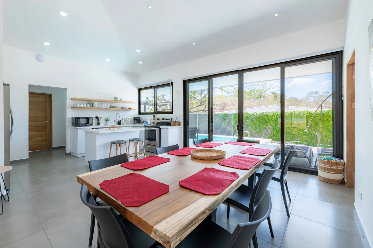 This accommodation is beautiful, just as shown in the photos. It is fully equipped with everything you need if you want to prepare your own food. It's very safe. If you bring pets, you should be careful because sometimes stray dogs enter the property. It is 7 minutes from Playa Grande and Playa Ventanas, and 15 minutes from Playa Conchal by car. There are pharmacies and supermarkets nearby. The accommodation manager is in constant communication with you. We really enjoyed this place — highly recommended.